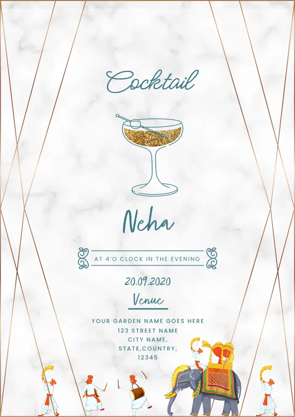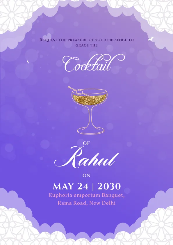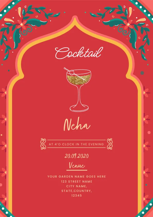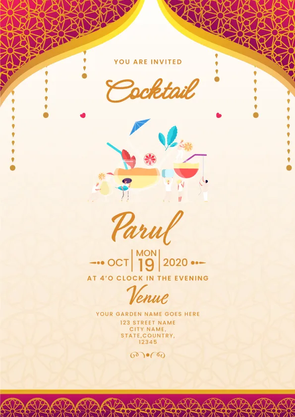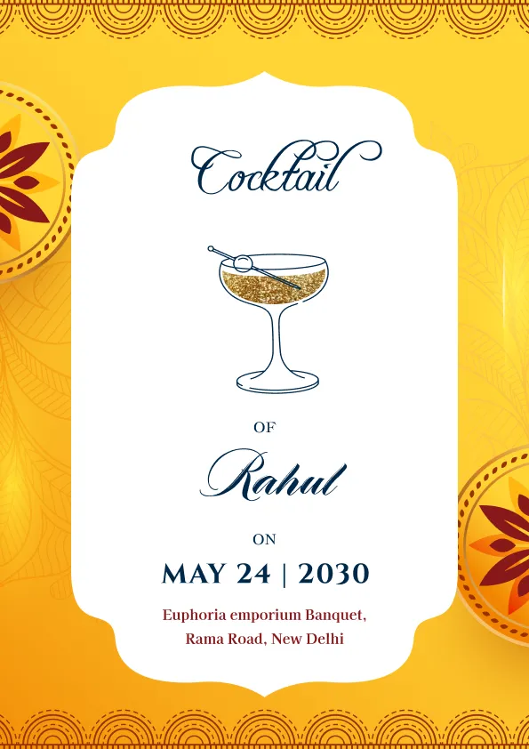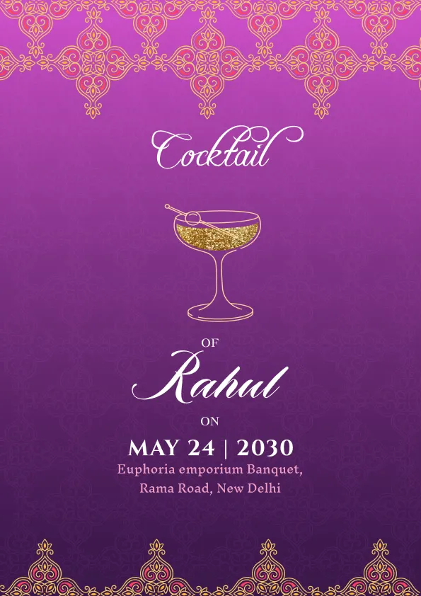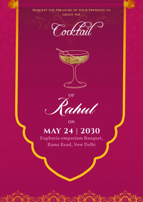 Looking for an eye-catching online cocktail party invitation! Welcome to Smart E Invites, where we make it easy to create digital invitations for your Indian wedding cocktail party! We offer you a hassle-free way to design and send a beautiful invitation.