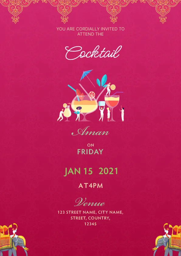 We make it easy to create cocktail party invitations to impress your guests if you’re planning an Indian wedding cocktail party. Also, we offer a variety of templates and a user-friendly platform. You will be able to make an invitation on Smart E Invites that perfectly captures the spirit of your event.