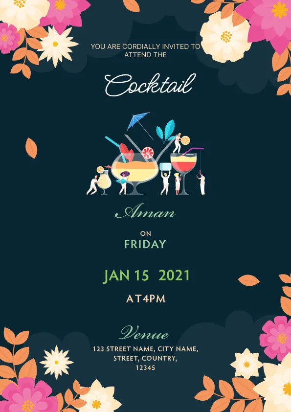 Our platform offers a variety of design templates to choose from. As a result, you can get the desired look for your cocktail party. Whether you need something modern or traditional, our templates can be customised to match your unique style and preferences. You can also add your desired images and graphics to create a truly one-of-a-kind invitation.